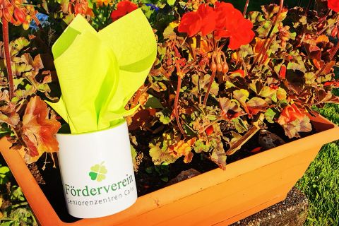 Der Förderverein Seniorenzentren Calw feiert in diesem Jahr sein 50-jähriges Bestehen und so bekam am Schluss der Veranstaltung jede Seniorin und jeder Senior eine Erinnerungstasse mit.