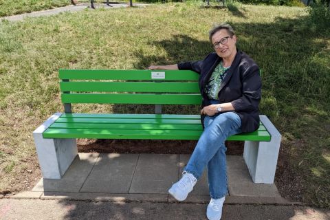 Vielleicht haben Sie schon eine gesehen: Der Förderverein Seniorenzentren Calw hat der Stadt sieben schöne Sitzbänke gespendet. Sie sind knallgrün, denn das ist die Vereinsfarbe, wie die Vorsitzende Gabriele Vogel beim Übergabetermin am Seniorenzentrum in der Torgasse erzählte. Zu finden sind die Bänke fast alle in der Nähe der drei Calwer Senioreneinrichtungen, dem Haus auf dem Wimberg, dem Seniorenzentrum Torgasse der Sonnenresidenz in Heumaden. Eine Bank hat es bis nach Stammheim geschafft.