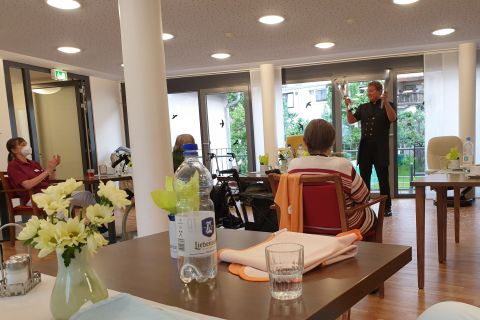 Während des gesamten Programms war passende Musik im Hintergrund zu hören, diese ergänzte die Show und die Bewohner konnten eine halbe Stunde abtauchen und sich in die Welt des Zauberns und der Artistik begeben.