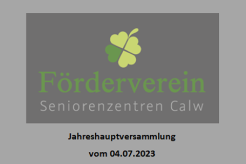 Jahreshauptversammlung 2020/2021 des Fördervereins Seniorenzentren Calw e.V. Endlich ermöglichten es die Corona-Bedingungen, dass die Jahreshauptversammlung des Fördervereins Seniorenzentren Calw e.V. durchgeführt werden konnte. Und das im Jahr seines 50-jährigen Jubiläums.